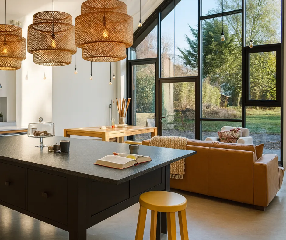 Contemporary aluminium windows offering slim sightlines, structural